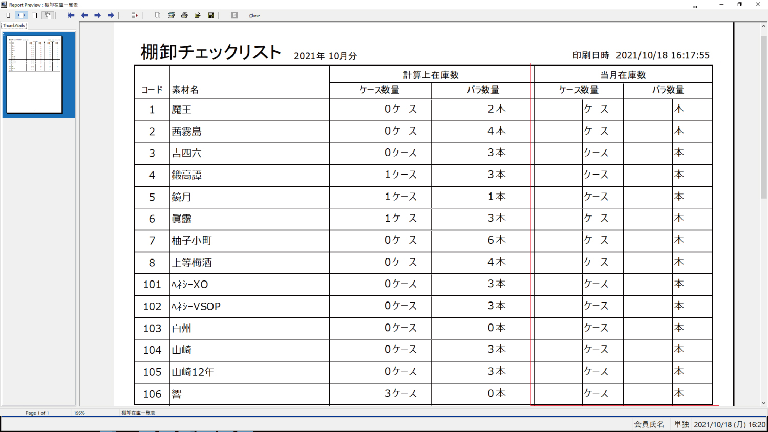 棚卸チェックリスト印刷(在庫管理機能)